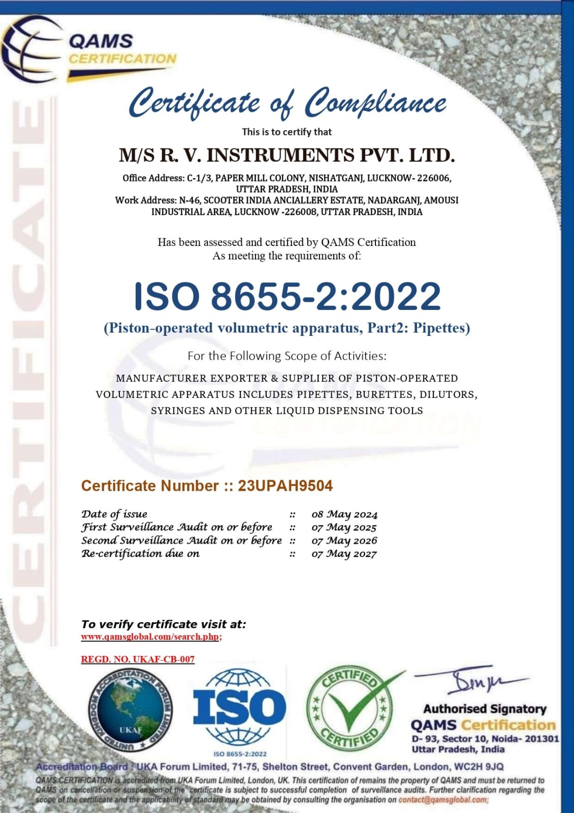 ISO 8655-2:2022 Certificate